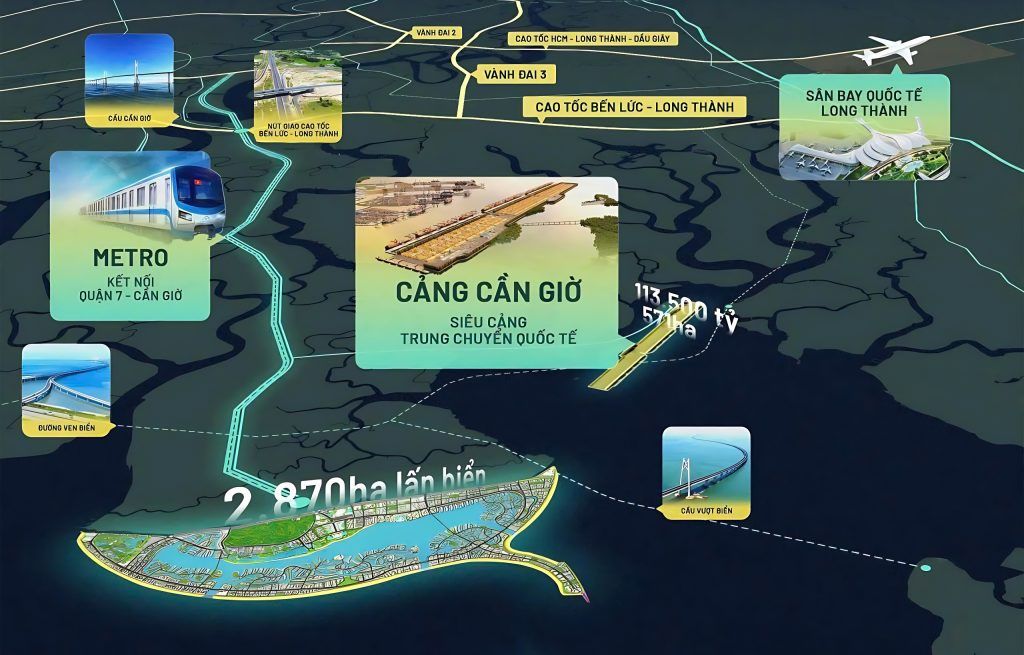Dự án cầu Cần Giờ (thay thế phà Bình Khánh) có tổng vốn đầu tư hơn 10.000 tỷ đồng, dự kiến khởi công trong năm 2025. Khi hoàn thành, thời gian di chuyển từ trung tâm TP.HCM đến Vinhomes Green Paradise chỉ còn khoảng 30 phút – một bước đột phá giúp Cần Giờ “cất cánh”.